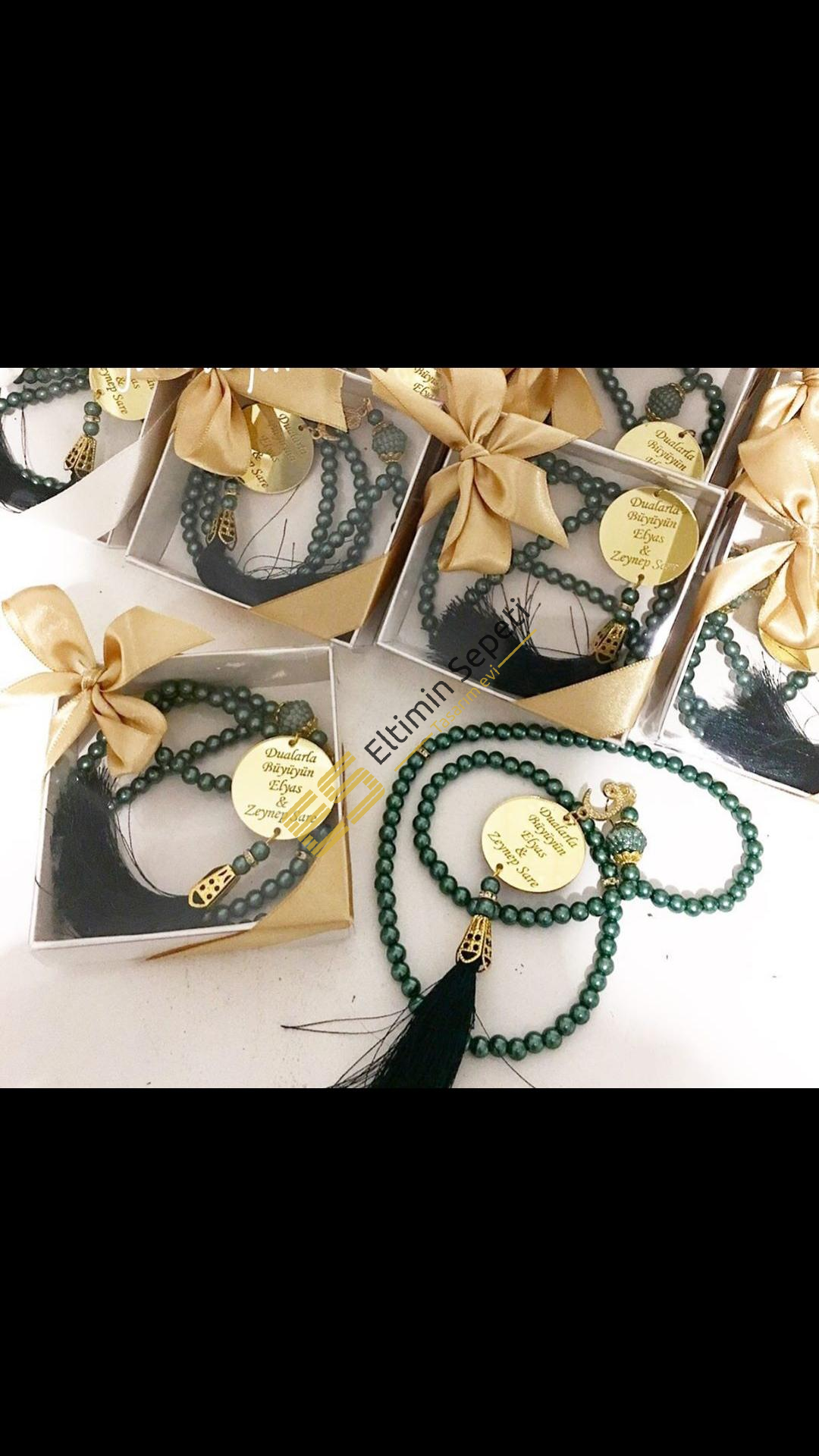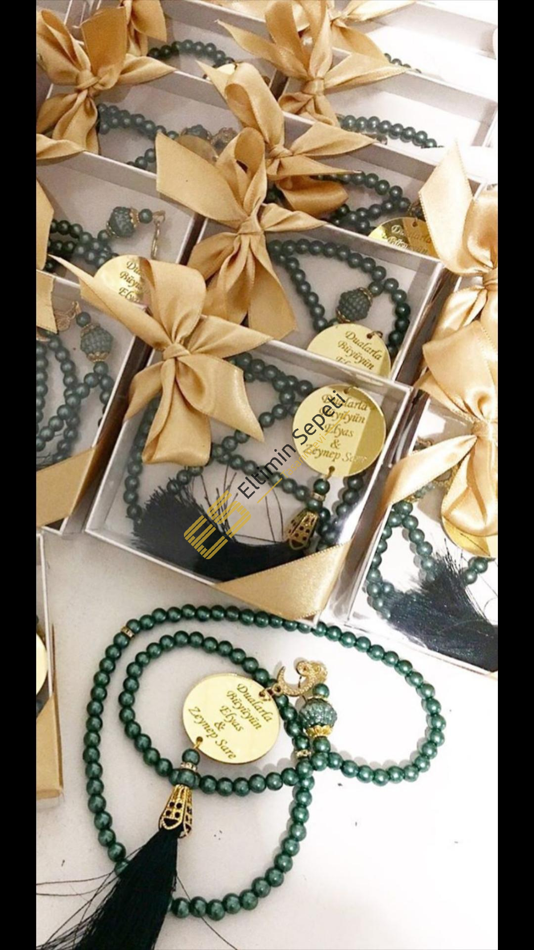Ürün incili tesbih olup isme özel pleksili ve kutulu şık bir modeldir.Tesbih rengi istenilen renkte hazırlanır...